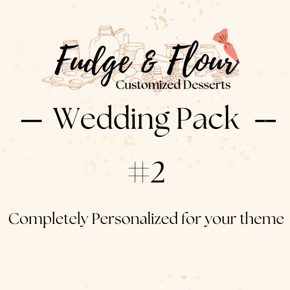 This expanded wedding package includes 8 dozen chocolate-covered pretzels, 8 dozen cake shooter cups, a 96-piece brownie pan, and 5 dozen personalized sugar cookies—ideal for larger weddings or upscale events. Select your cake shooter flavor from the dropdown below, and use the notes box to request specific colors, themes, or custom designs.